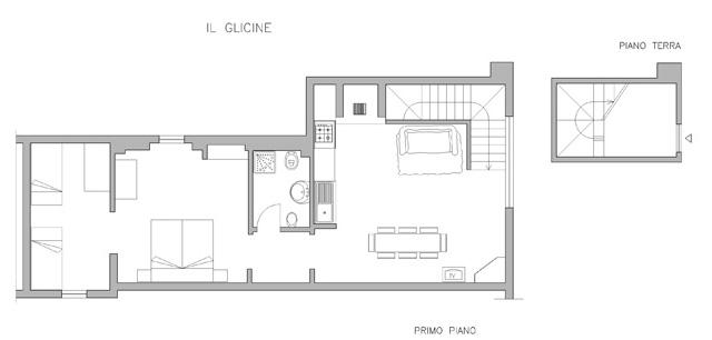 Appartamento per 6 persone, dispone di un soggiorno con divano – letto, angolo cottura, una matrimoniale comunicante con una doppia, un bagno.