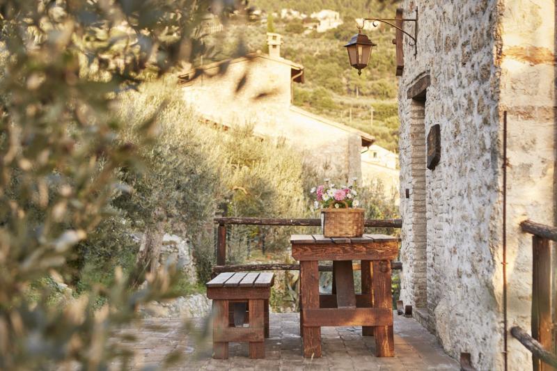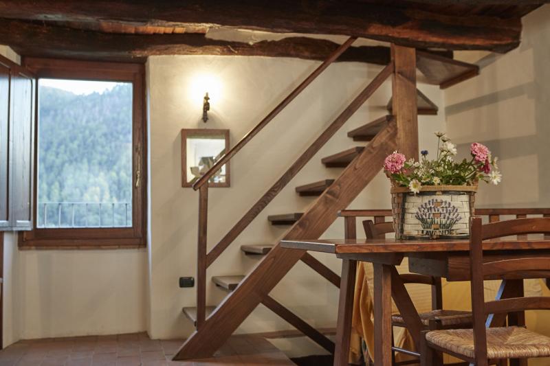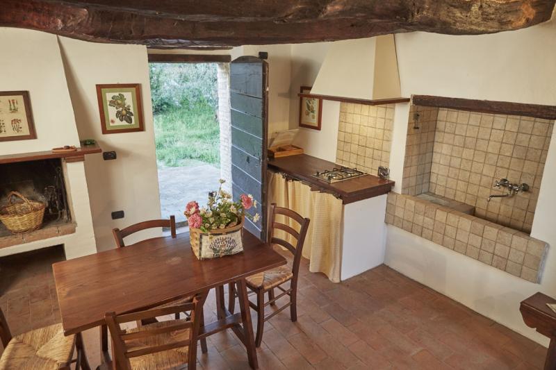 Dispone di una camera doppia, di una cucina con camino, di un soggiorno letto, di un bagno con doccia; tutti gli ambienti sono arredati con mobili umbri.